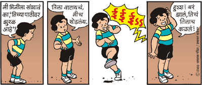 Sticking to her stance she said – Tila sang dada.Ti ragawat ahe. Deun ye mhane waapas. : Tell her then. She is scolding us. And
